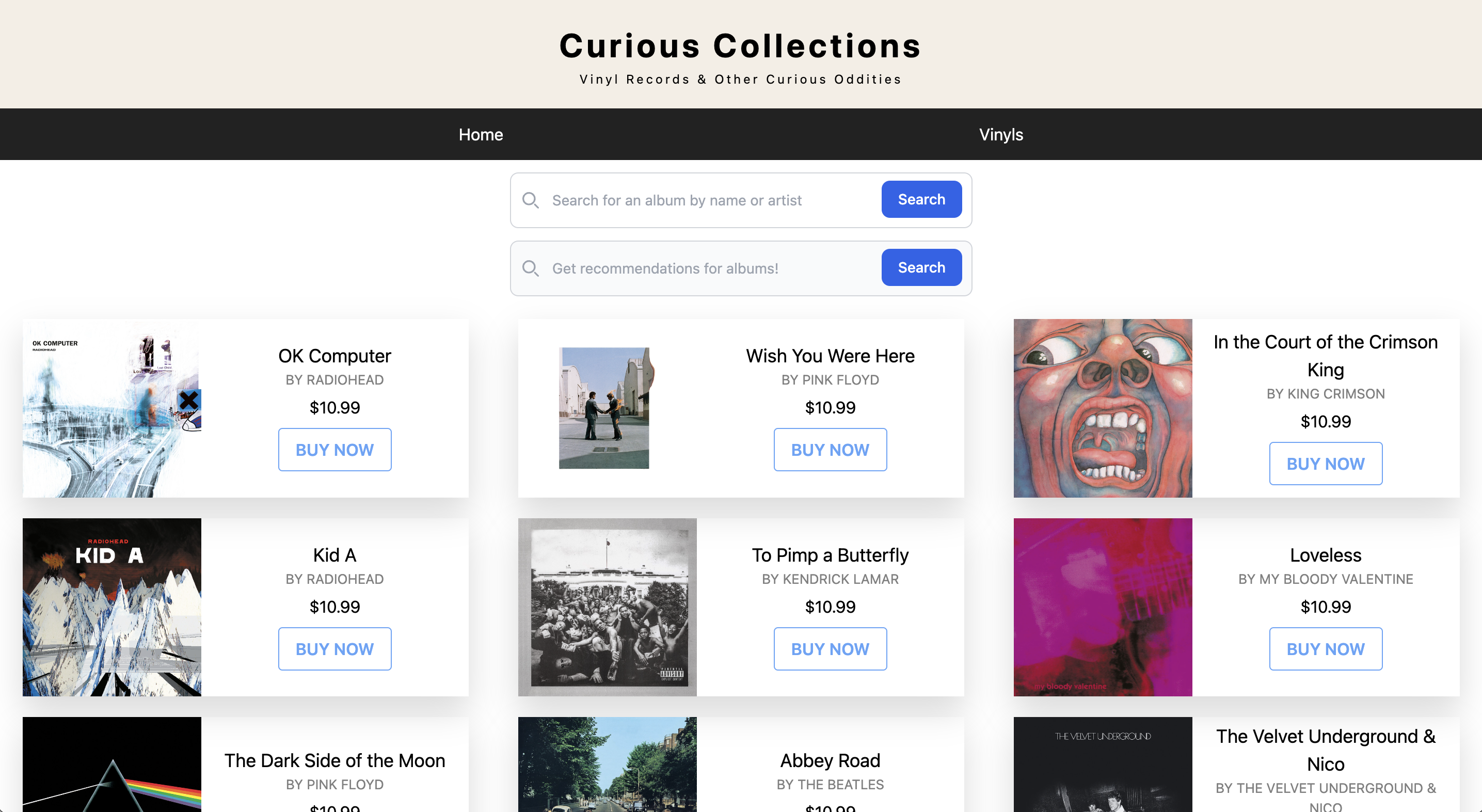 Automated and concise system for keeping track of album inventory made for a local small business, Curious Collections. Features a Notion database/querying, recommendation algorithm for albums, and a song tune recognizer. Utilized Spotify API for music data, Kaggle dataset for albums, and Tensorflow for recommendation algo.